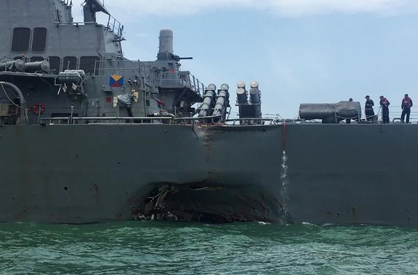 美国海军驱逐舰“麦凯恩”号在新加坡附近海域与一艘油轮相撞,这已经是美国海军今年第四次在亚洲海域发生撞船事故。有专家指出,美国海军在两个月内二度发生撞船事故,并不纯粹是意外或人为疏失。